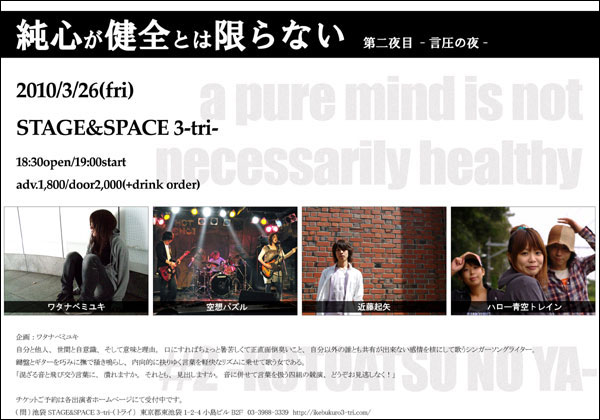 ・3月ワタナベミユキ自主企画『純心が健全とは限らない 第二夜目-言圧(コトアツ)の夜-』最新情報がUPされました。